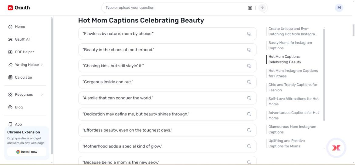 Regarding hot mom captions, they combine self-assurance, personality, and parenthood, so transcending appearances. Whether it’s a picture of fashionable clothing, a moment of enjoyment, or a day spent in the park, the right description will help the experience to be more fun. Finding the suitable words might be challenging; but, with Gauth’s AI-driven support, a great spectrum of ideas is just a click away.